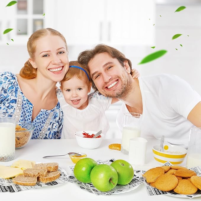- No Need for Cleaning: these newsprint wax papers are disposable, so you can place them on the surface of the plate, bowl, tray, basket and other containers, then put the food on the paper, no need to spend time and energy in cleaning, bringing you much conveninece