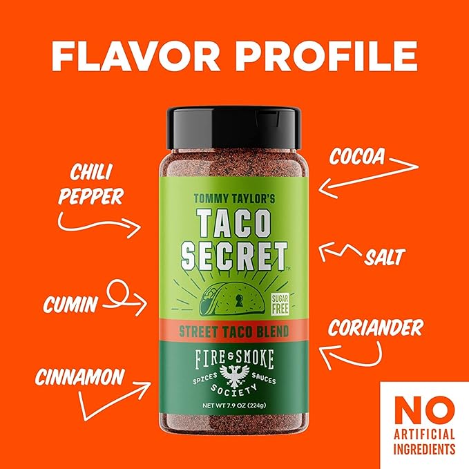 Fire & Smoke Society Taco Secret Taco Seasoning Mix | XL Bottles | Fajita Seasoning Mix, Carnitas, Meat, Mexican Spice Blend | MSG Free, Gluten Free, Non-GMO | 9.2 oz (2-Pack)