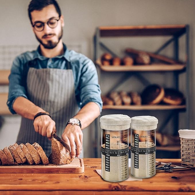 - Perfectly Sized and Easy to Clean - Our wide-mouth jar makes it easy to add ingredients, stir, and clean up after you've made your delicious sourdough bread. The jar is the perfect size to get you started and features a stylish design that will blend well with any kitchen decor