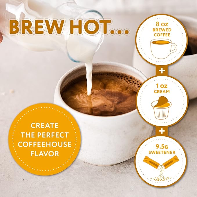 - For a truly delicious coffeehouse flavor experience use 8oz of brewed coffee to 1 oz of creamer and 3 packets of sugar.
