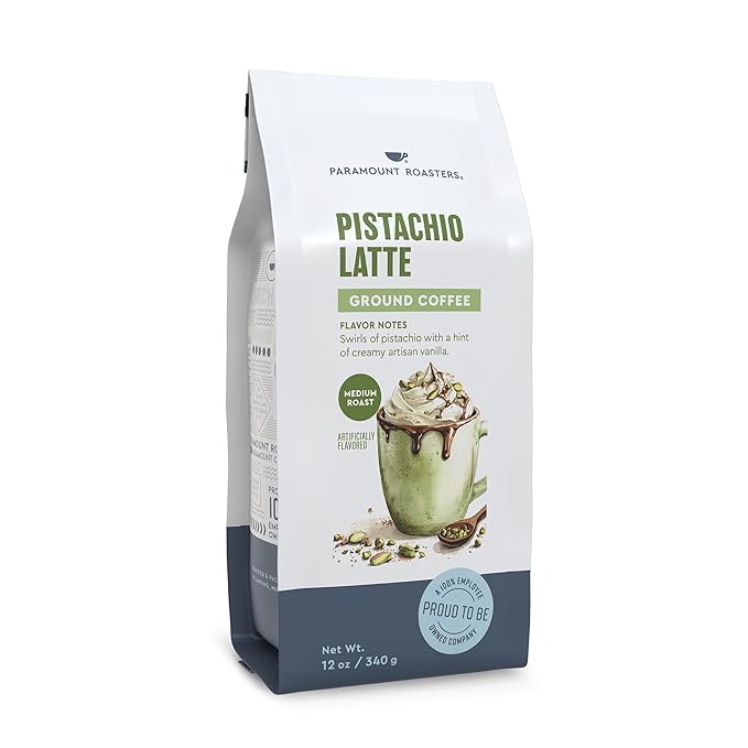 Paramount Roasters, Pistachio Latte Flavored Ground Coffee, 1-12oz bag, Medium Roast (Paramount Coffee Company)