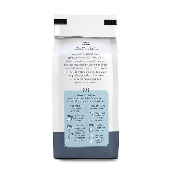 - Pistachio flavored ground coffee from Paramount Roasters, 1-12oz package, medium roast