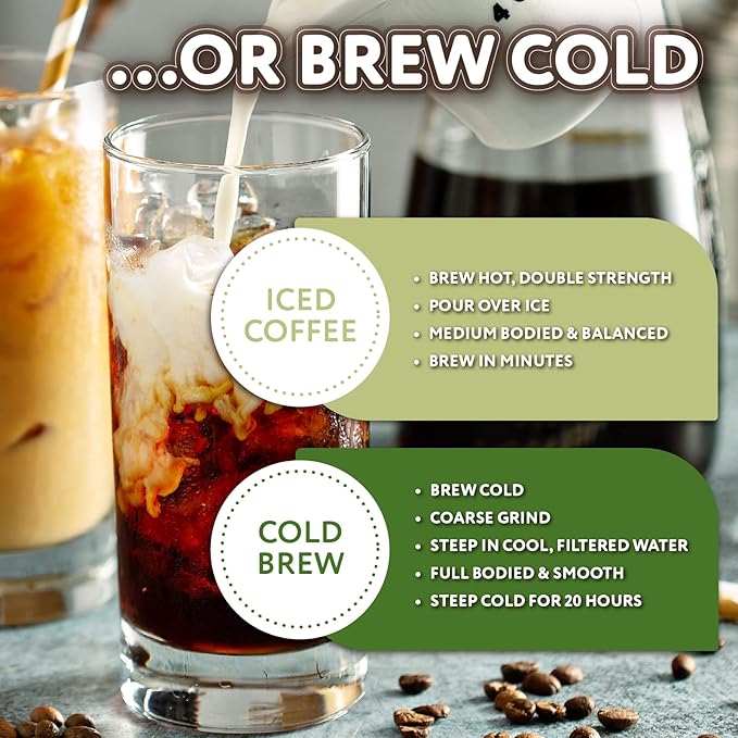 - Delicious hot or iced. To enjoy iced, brew double strength, pour over ice and enhance with cream and sugar.