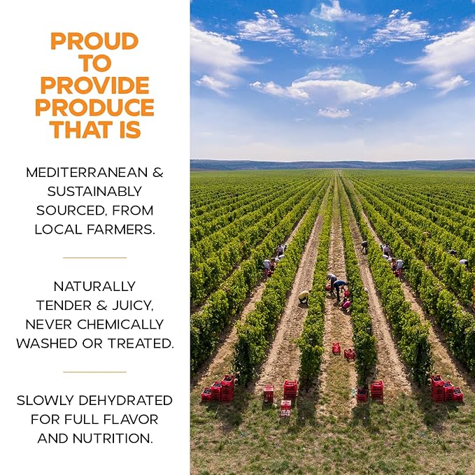 - SINGLE INGREDIENT SNACKS - All Drybox dried fruit is 100% pure fruit. No preservatives, no dyes, no fillers. Organic, Raw, Vegan, Non-GMO, Gluten Free, Kosher. Tree ripened by the warm Mediterranean sun.