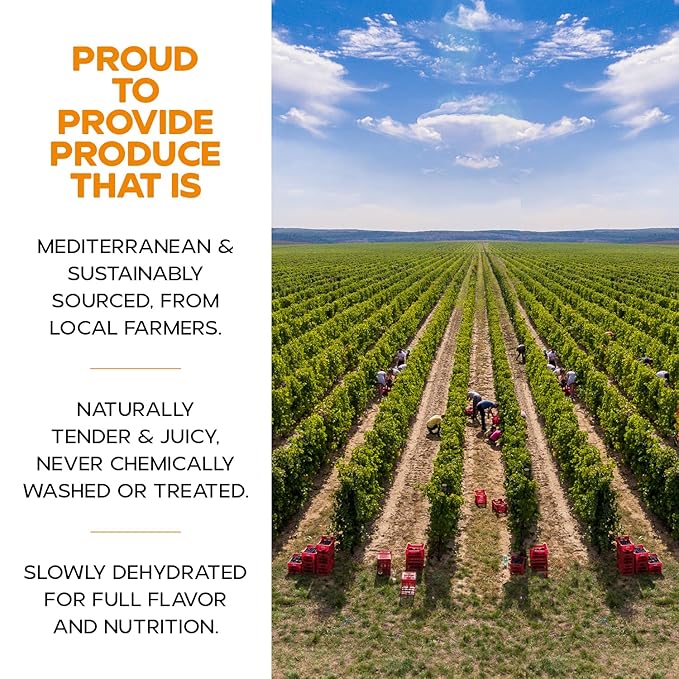 - SINGLE INGREDIENT SNACKS - All Drybox dried fruit is 100% pure fruit. No preservatives, no dyes, no fillers. Organic, Raw, Vegan, Non-GMO, Gluten Free, Kosher. Tree ripened by the warm Mediterranean sun.