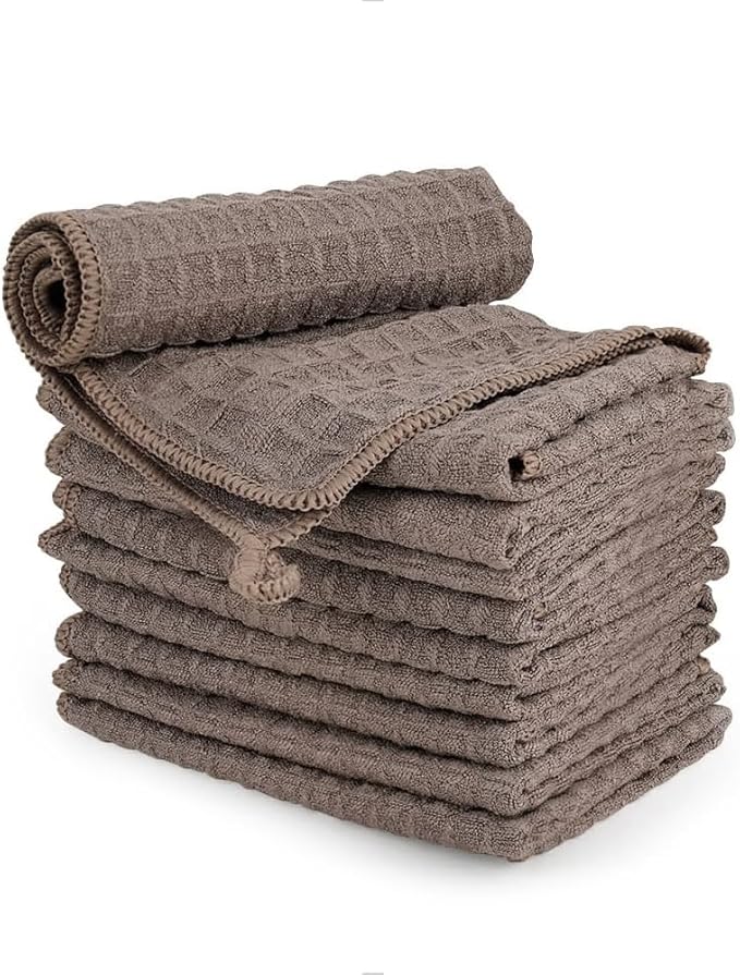- ☕ 【FAST DRY AND DURABLE】Waffle weave design makes the cloth holds liquids quickly and dry fast, no need to worry about the bad smell. Machine wash with similar colors. Brown color micro cloth to coordinate with your home and kitchen cleaning.