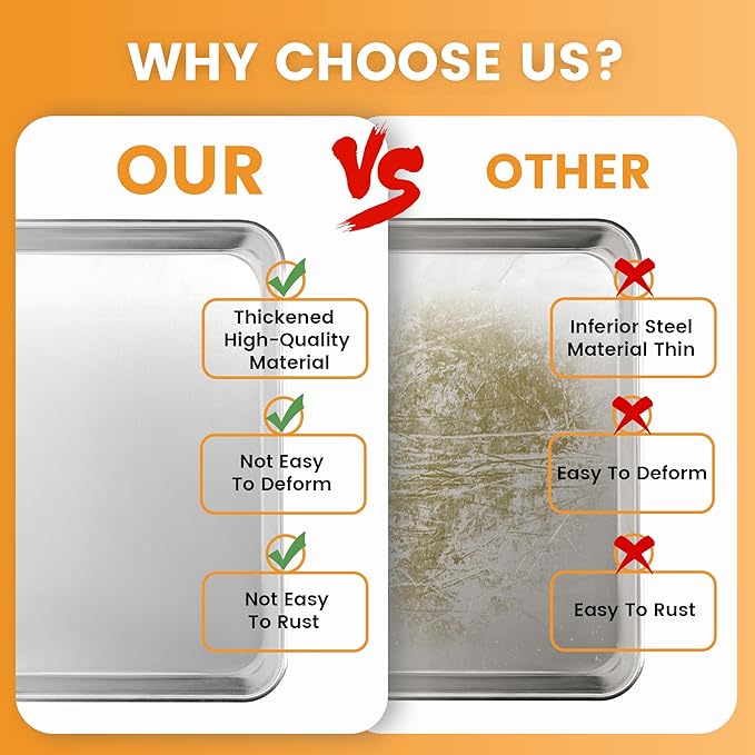 - Reinforced Rimmed Edges: The sheet pan has a rolled-rimmed design of the baking sheet pans provides extra support for superior strength and resistance to warping at high temperatures