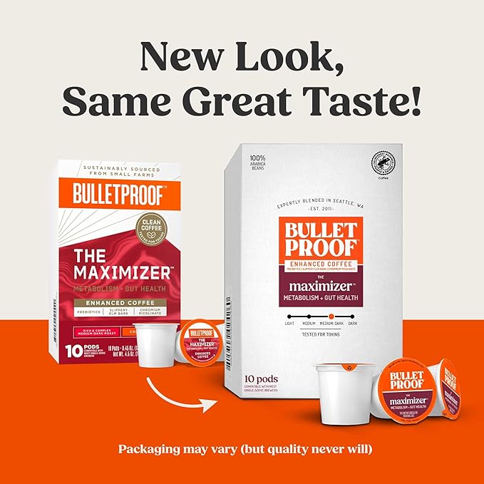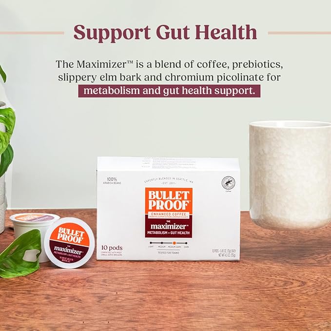 - Unbeatable Taste: Contains one 10-count box of The Maximizer functional coffee pods, an adaptogenic coffee with prebiotics, slippery elm bark and chromium picolinate, Packaging May Vary