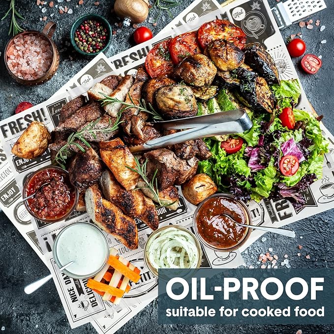 - Proper Size: this food paper sheet measures about 13 x 15.8 inches/ 33 x 40 cm, proper size for commercial use and family use, you can put in into basket as a basket liner, or use it as a wrapping paper