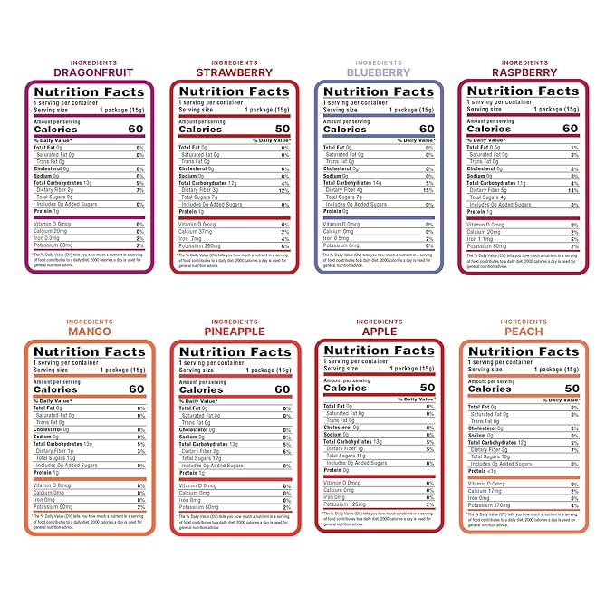 - DELICIOUS, CRISPY, AND LIGHT SNACK: This variety pack contains two of each flavor, including Strawberry, Blueberry, Raspberry, Apple, Peach, Pineapple, Mango and Dragon fruit, giving you an exciting mix to satisfy every craving.