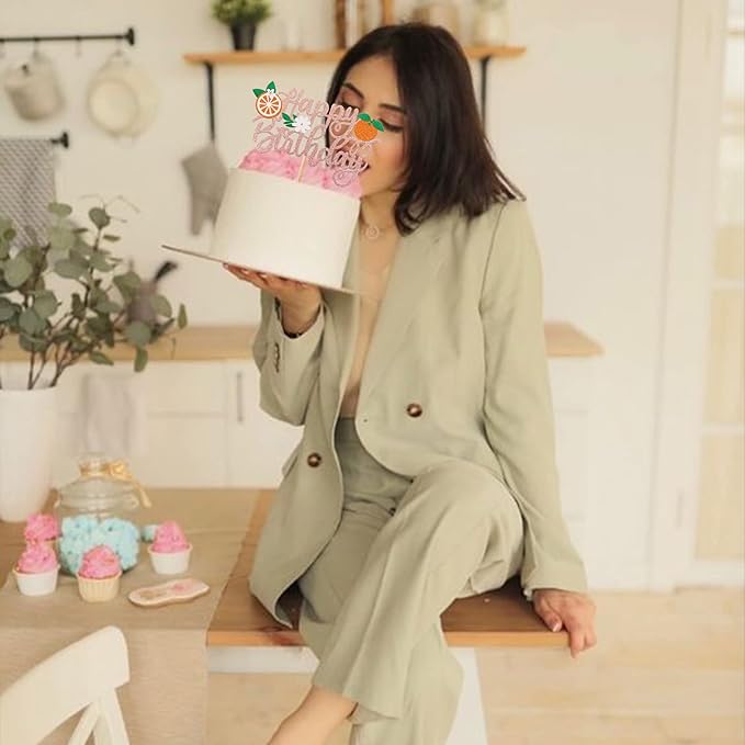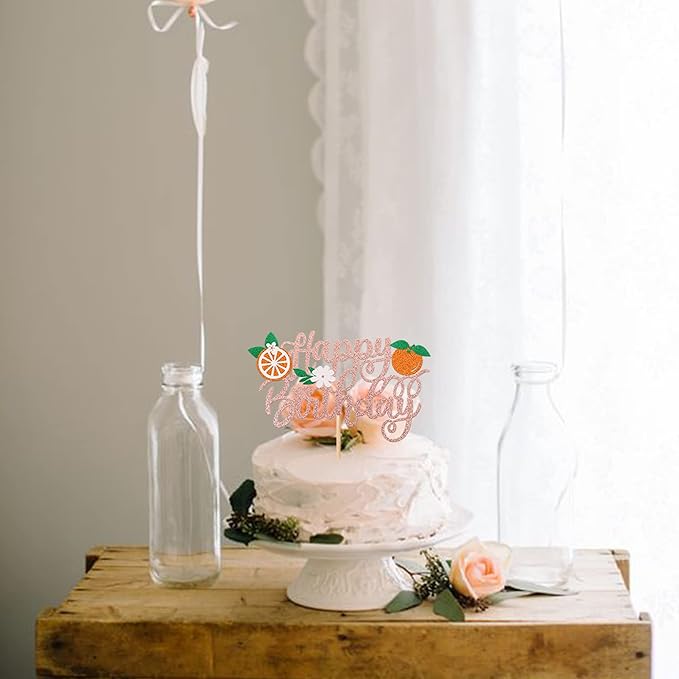 1 Pack Orange Cake Topper Glitter Happy Birthday Cake Pick for Fruit Theme Baby Shower Kids Birthday Party Tangerine Fruit Party Cake Decorations Supplies Rose Gold