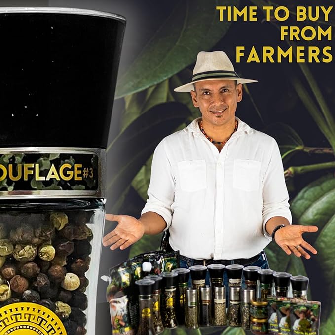 Yupanqui Peppercorn Medley Grinder FOR VEGGIE GRILL 3.5oz, Refillable Pepper Grinder Manual with Organic Peppercorns Mix of Tri Color Peppercorns Whole CAMOUFLAGE