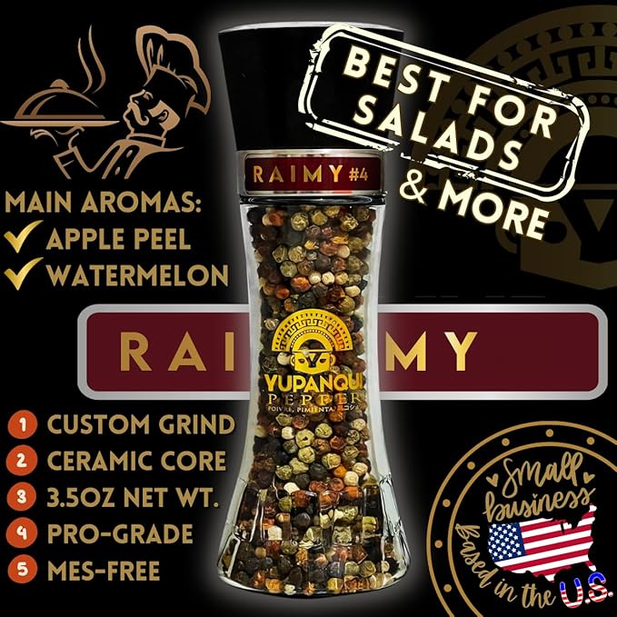 - READY TO ELEVATE YOUR CULINARY Creations to the next level? Indulge in the exclusive 7 Gourmet Peppercorn Blend expertly crafted by the Yupanqui family. This rainbow peppercorn grinder boasts 100% vibrant colors an enticing aroma, and rich flavor. Say hello to RAIMY, which means "Party" in Kichwa, and add a touch of cheerfulness and optimism to your dishes. This versatile premium pepper peppercorn blend invites you to unleash your creativity and infuse every meal with a festive spirit!