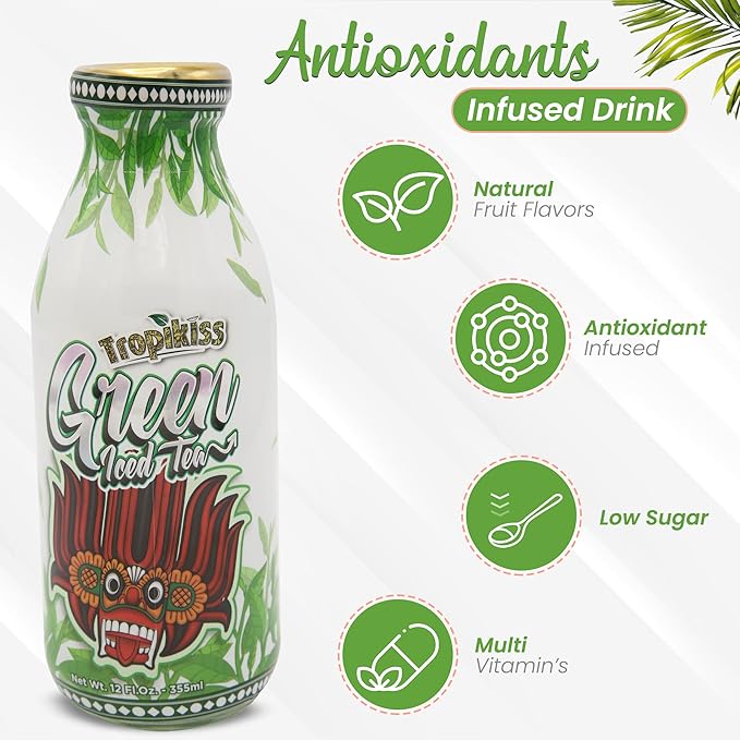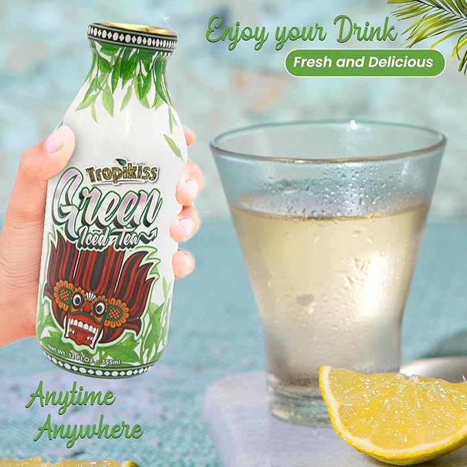 Tropikiss 12-Pack Green Iced Tea – Antioxidant-Rich Refreshing Drink | Natural Bottled Ice Tea | Healthy & Flavorful Beverage