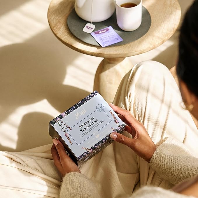 - Yogi Stress & Sleep Tea Sampler Box: This herbal tea variety pack includes Yogi Bedtime, Yogi Blueberry Sage Stress Relief, Yogi Cinnamon Horchata Stress and Sleep, Yogi Comforting Chamomile, Yogi Honey Lavender Stress Relief, Yogi Kava Stress Relief, Yogi Relaxed Mind, and Yogi Soothing Caramel Bedtime
