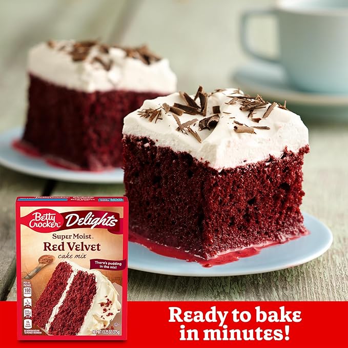 - CAKE MIX: Bake a delicious, moist red velvet cake dessert