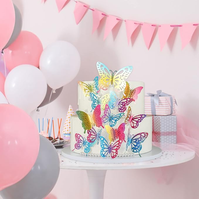 - 🦋Premium Material: Made of high quality glitter PVC Material, so sparkling under the sunlight and glitter will not fall off. Cake topper packed in cardboard to provide maximum protection.