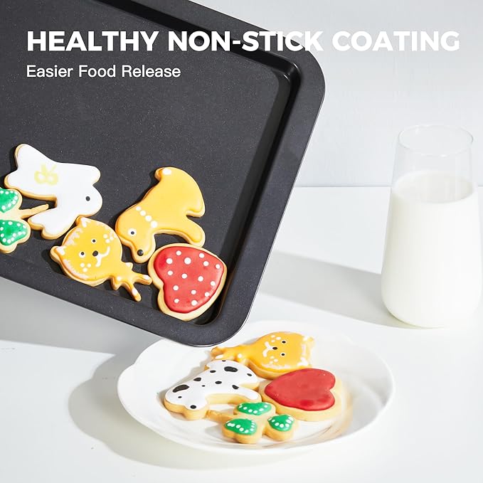 - 100% SATISFACTION GUARANTEE – We are sure that our baking sheets for oven nonstick will win your heart with their simple design, colors, and versatility! If you have a fair concern, please contact us, we will provide 365 days of service and reply within 24 hours.