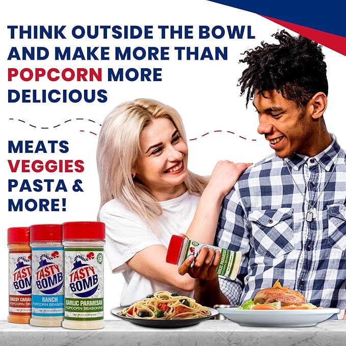 - Can Popcorn Get Better? – Yes! Give your fave treat a flavor blast with Tasty Bomb’s 2.8-3 oz. popcorn seasoning variety pack and bags that are perfect for enjoying microwaved or whole-kernel popcorn.