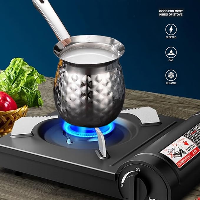 - 【Material】This Turkish coffee warmer is made with quality stainless steel, comes with a heat-resistant lid and handle for easy use. This cute coffee maker helps to maintain the original aroma of coffee.