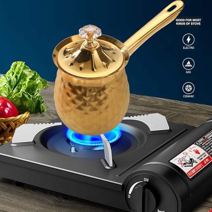 - 【Material】This Turkish coffee warmer is made with quality stainless steel, comes with a heat-resistant lid and handle for easy use. This cute coffee maker helps to maintain the original aroma of coffee.