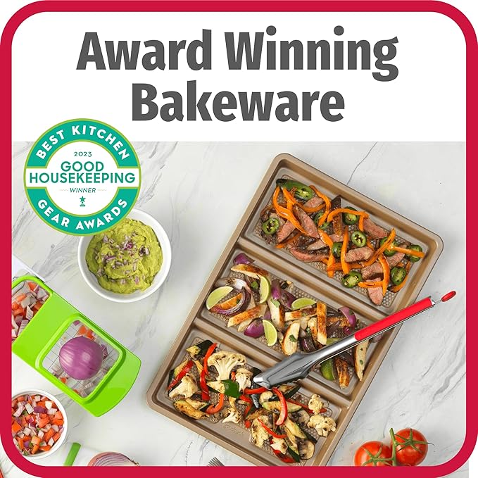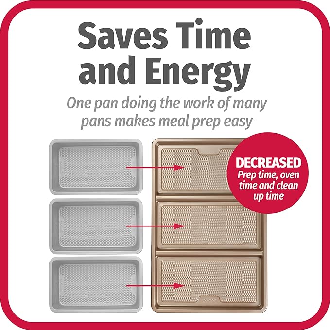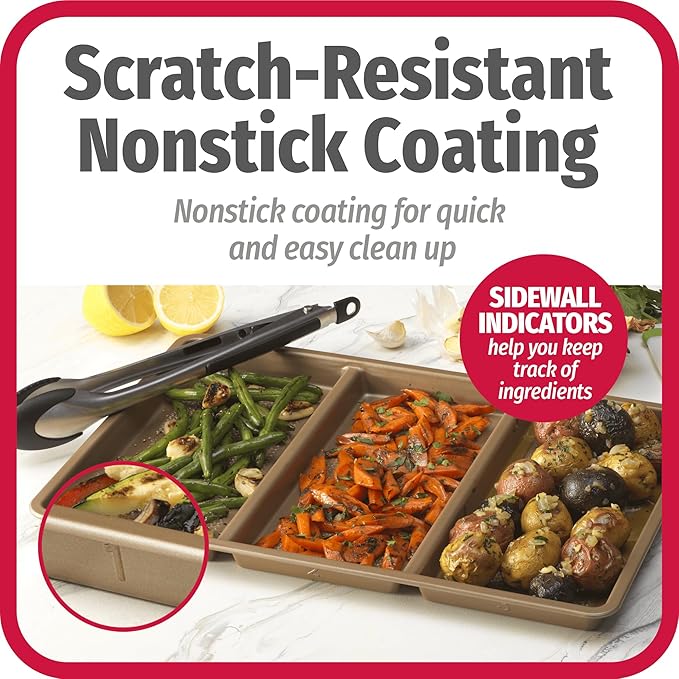 - DIVIDED PAN FOR TIME EFFICIENCY: Experience efficiency with this innovative sheet pan design. Streamline your cooking process by reducing preparation time, oven usage, and cleanup efforts, offering the convenience of multiple pans in one.