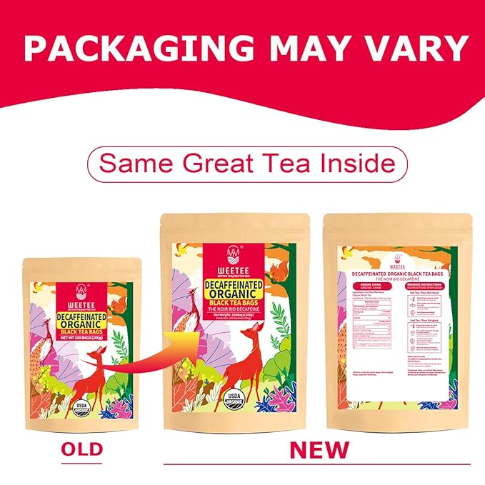 WT WEETEE Organic Decaf Black Tea Bags, Organic Black Tea 100 Count | Smooth & Mild Taste | CO2-Decaffeinated | Resealable Kraft Bag