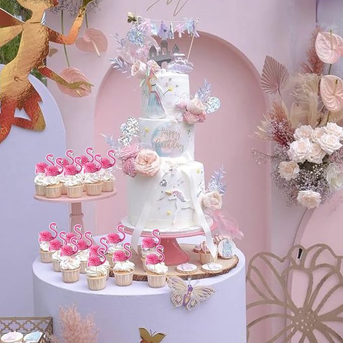 48 Pcs 3D Flamingo Cupcake Toppers Cocktail Tropical Aloha Luau Cupcake Picks Flamingo Summer Hawaiian Beach Cupcake Decorations for Baby Shower Birthday Wedding Party Supplies Pink