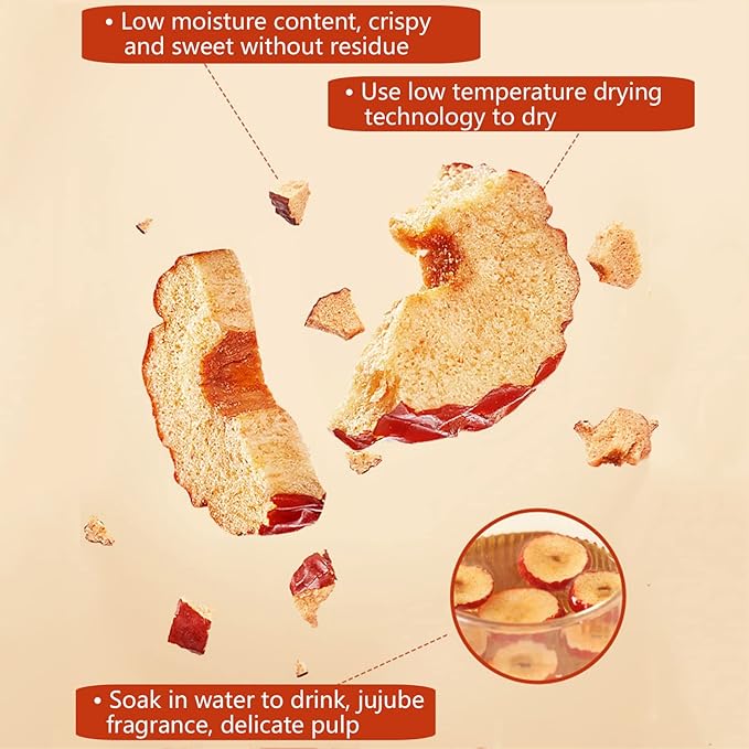 - CRISPY TASTE: Our Dried Red Date Slices Have a Crispy Texture And a Sweet;Rich Taste That Is Perfect For Adding To Casual Snacks Or Drinking Water