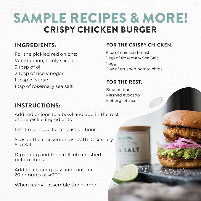 - Herb-Infused Perfection: Our Rosemary Infused Sea Salt combines the briny richness of natural sea salt with the fragrant, piney aroma of freshly harvested rosemary. Ideal for grilling meats, roasting vegetables, or adding a gourmet touch to baked goods, this rosemary salt seasoning brings a burst of savory, herbal flavor to your dishes. Packed with essential minerals and antioxidants, it’s a flavorful and health-conscious choice for any kitchen.