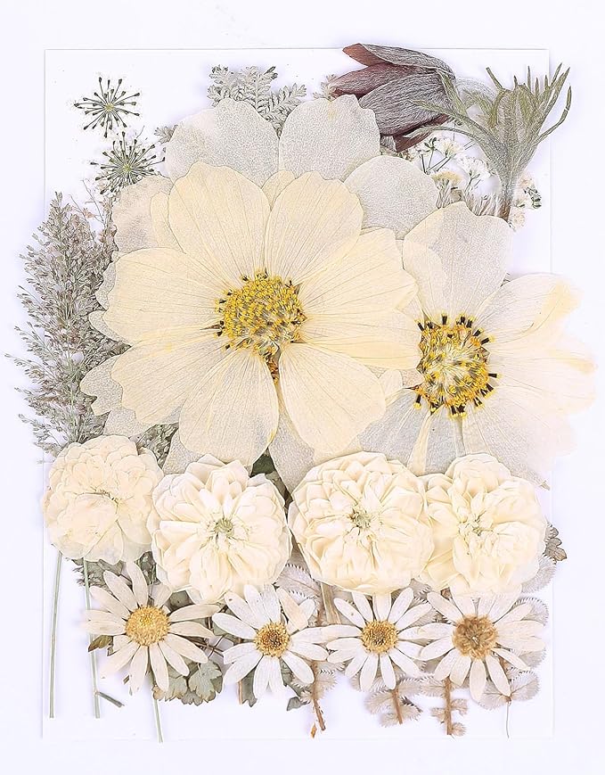 - 🌼Made of large natural flowers and leaves, thus each piece varies slightly in size and shape.Each package contains 12 types of plant materials. total about 48 pcs.