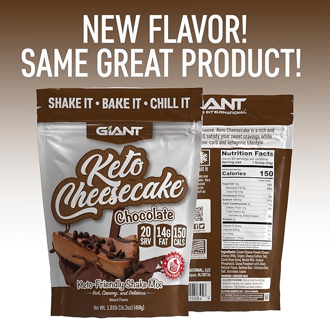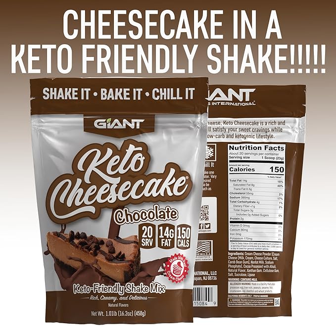 Giant Sports Keto Cheesecake Shake Mix - Delicious Low Carb, Ketogenic Diet Gluten Free Powder Mix - Works Great with Almond Milk - Chocolate (20 Serving Bag)