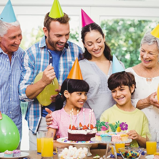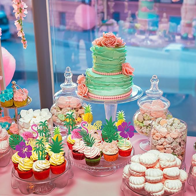 Rsstarxi 24 Pack Tropical Cupcake Toppers Glitter Leaf Pineapple Flamingo Cupcake Picks Aloha Hawaiian Luau Cake Decorations for Summer Aloha Theme Baby Shower Birthday Wedding Party Decor