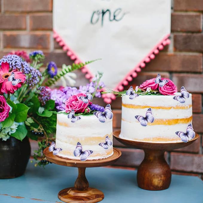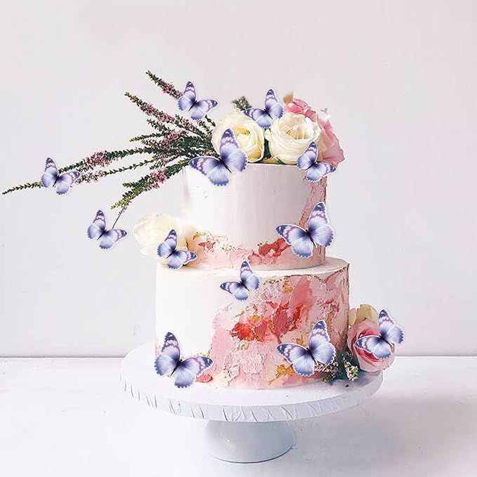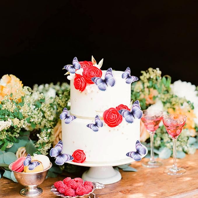 30PCS Butterfly Cake Toppers 3D Blue Purple Butterfly Cupcake Toppers Birthday Party Cake Decorations Supplies for Anniversary Wedding Party Baby Shower Wall Decor