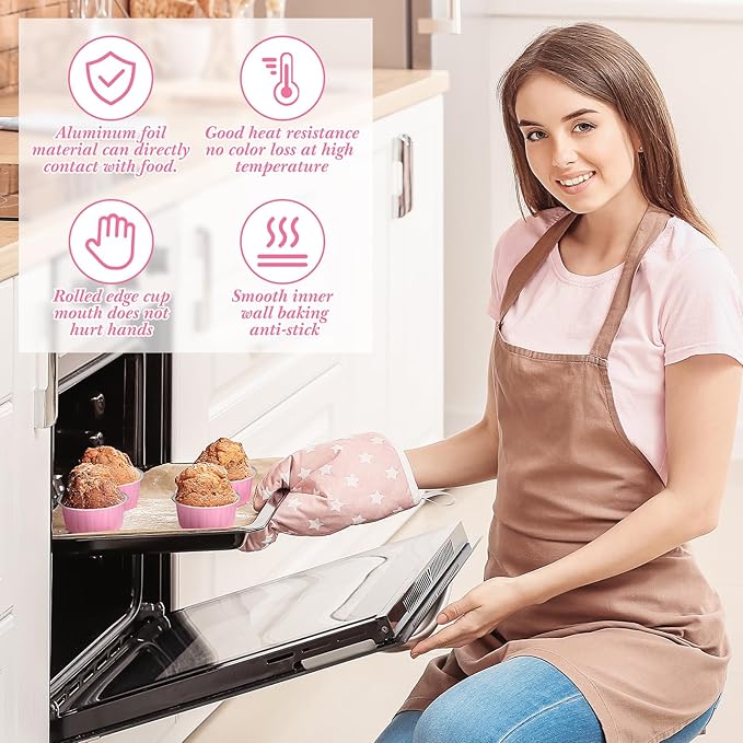Gejoy 400 Pcs Aluminum Foil Baking Cups with Lids 5 oz Disposable Ramekins Mini Cake Pans Creme Brulee Cupcake Liners Muffin Tins Flan Mold Dessert Container for Wedding(Pink,Classic)