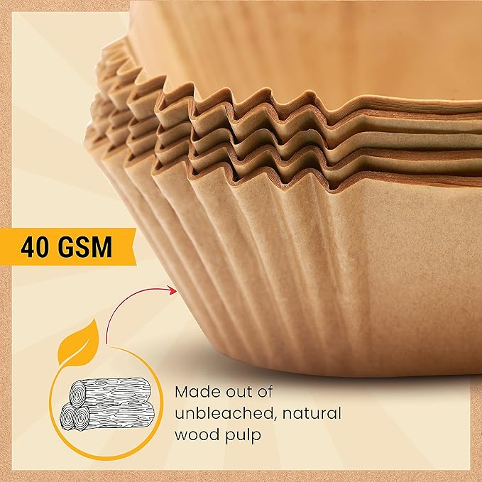 - NATURAL UNBLEACHED ASSURANCE - Cook with confidence using our brown parchment paper for air fryer. Unbleached and natural, our air fryer parchment paper liners keep your food pure and safe.