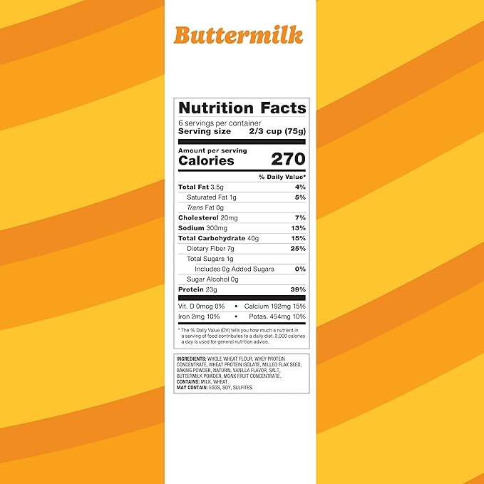 - 💪Stacked High Protein - Each serving of Flourish Buttermilk pancakes contains 23 grams of protein, 7 grams of fiber and zero added sugar! Packed with whey protein and flax seeds, this will give you a high-protein breakfast that tastes great and will help you stay full until lunch. Say goodbye to mid-morning crashes.