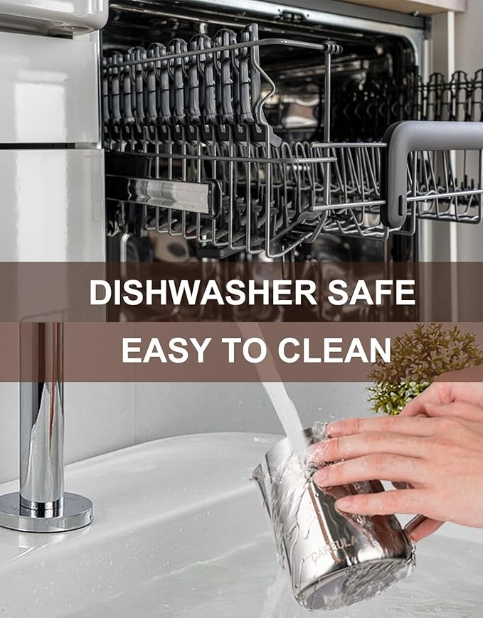 - Durable & Excellent Quality: Made of the highest grade 304 stainless steel, our milk frother cup are rust-proof, stain-proof, heat-proof, and non-toxic. We assure you that our frother pitcher will not rust, even if it is used for years. The milk pitcher are also unbreakable, ensuring durability and longevity.