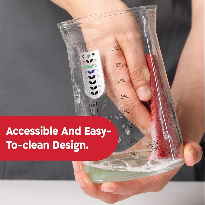 - Discover the Joy of Artisan Sourdough Bread - Exclusive design, molded for optimal sourdough starter maintenance. With its funnel-shaped opening, this sourdough starter jar enables effortless handling.