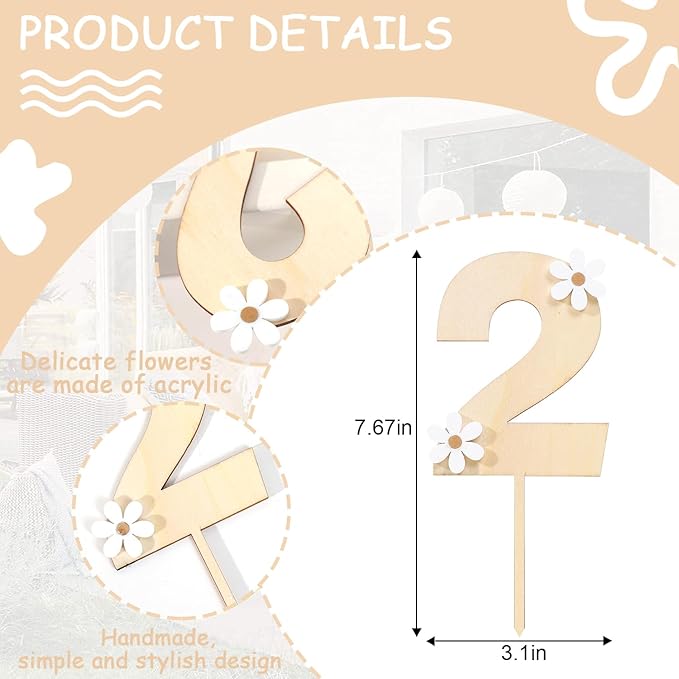 - SUITABLE SIZE AND PERFECT DESIGN - Many people are looking for such a wooden daisy cake topper as a baby's birthday cake decoration, in order to meet the requirements of many parents, and through a series of investigations, we have designed such a unique wooden daisy cake topper.