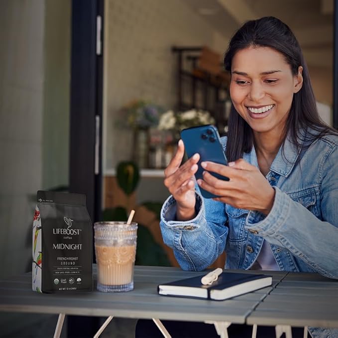 Lifeboost Midnight French Roast Coffee Ground - Non-GMO Single Origin USDA Organic Low Acid Coffee French Roast - Third Party Tested For Mycotoxins & Pesticides - 12 Ounces