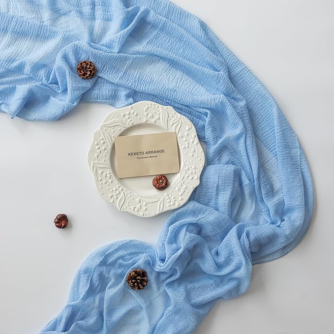 Cheesecloth Light Blue Table Runner Gauze Rustic Cheese Cloth Table Runner 120 Inch 10 FT for Wedding Baby Shower Bridal Shower Birthday Party Sheer Home Boho Decorations