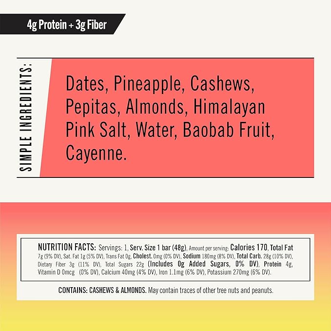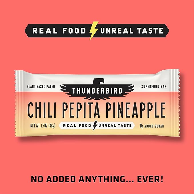 Thunderbird Bars Energy Snack, Gluten-Free with Protein, Healthy Real Food, Vegan Paleo Non-GMO, No Added Sugar, Chili Pepita Pineapple Flavor (12 Count, 1.7 oz. Bars)
