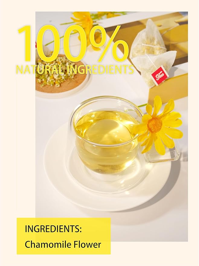 TeeLux Chamomile Tea Bags, 1.5g/bag, Pure Natural Chamomile Flowers Herbal Tea, Caffeine Free, 100 Count