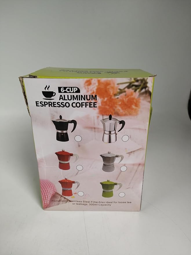 6 Cup Aluminum Espresso Stovetop Moka Pot Express Coffee Maker Percolator Italian Classic Mocha Coffee Machine for Italian and Cuban Cafe Brewing for Home & Camping 300ml 10oz