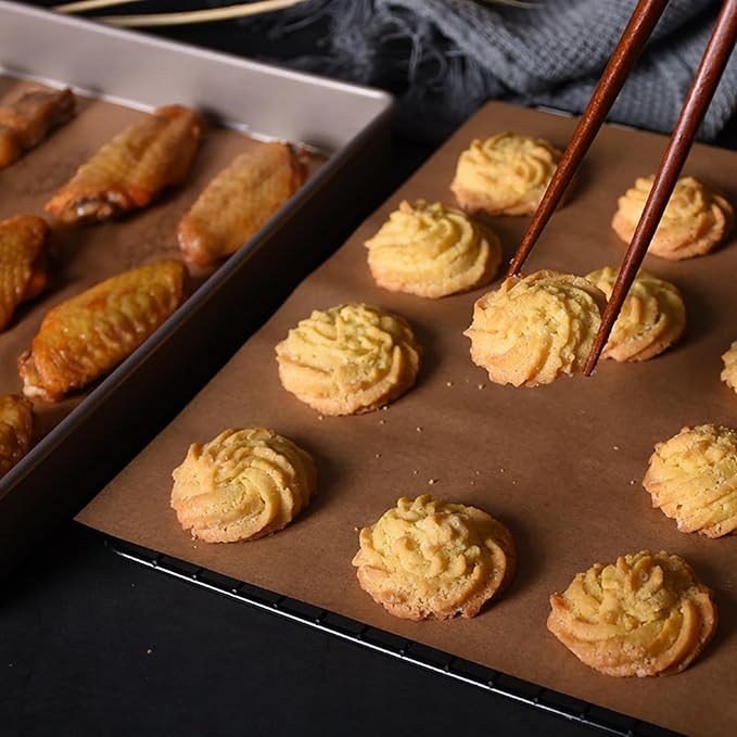 - NON-STICK AND EASY TO CLEAN: Non-stick and dispense flat with no curling up, Food can be easily slid off from the baking tray and you just need to remove the paper and throw it away after baking.