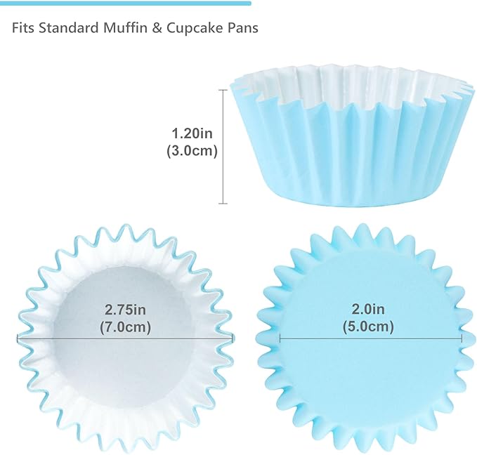 - Standard Size: 2.75 in. base diameter (7cm x 5cm), 150 Counts; fits standard muffin and cupcake pans.