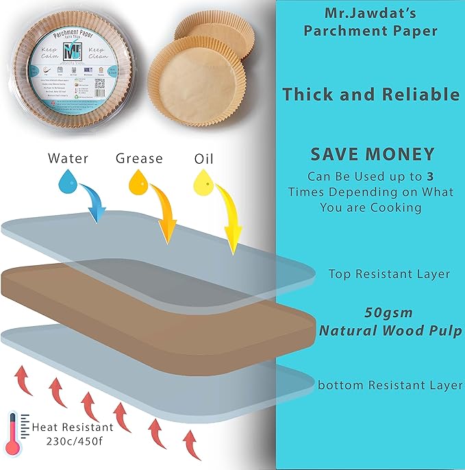 - ✅ Hassle-Free Cooking: Prevents food residue and grease buildup. Enjoy evenly cooked meals with zero cleanup stress. Our disposable paper liners create a protective barrier between your food and the cooking surface. This ensures even cooking and browning and prevents stubborn, baked-on food residue and greasy pans. Cleaning up after a meal has never been easier.