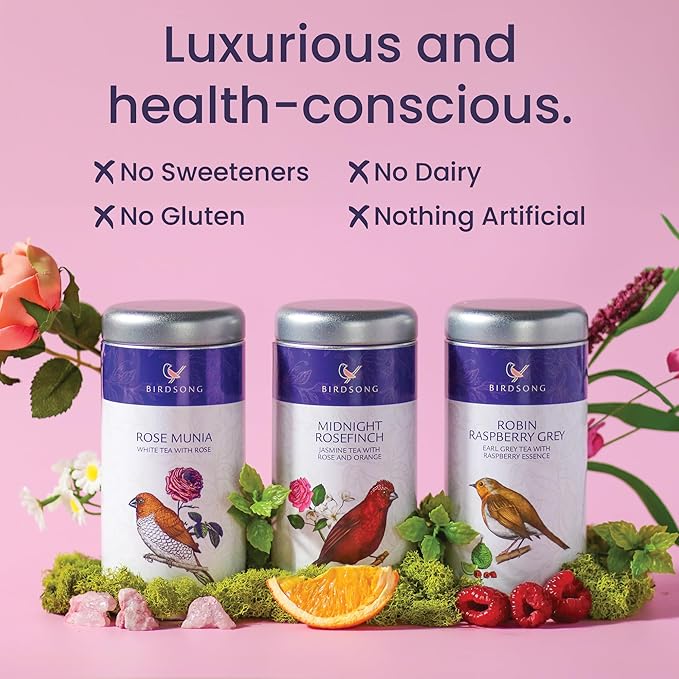 - Birdsong Robin Raspberry Earl Grey blends premium organic black Assam TGFOP tea with organic orange peel, safflower, and natural raspberry essences, offering an invigorating and aromatic Earl Grey experience.