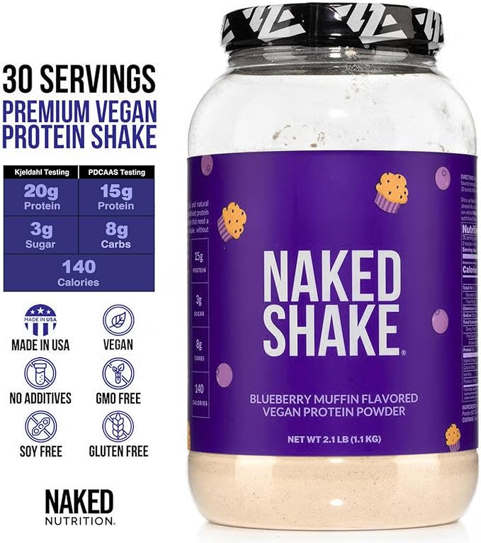 - BLUEBERRY MUFFIN PROTEIN SHAKES: Use Naked Shake to supplement your protein intake without compromising on quality. Just mix our blueberry protein powder with water and enjoy a tasty protein shake while you’re on the go.